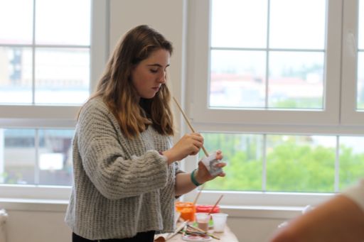 Después de asistir a la charla los estudiantes han continuado con los distintos talleres: trabajos sobre Pocheco (fábrica francesa), presentaciones sobre los molinos (salida que haremos mañana) y por último han estado diseñando carteles de concienciación sobre el medio ambiente para poder así exponer el lunes. Debido al mal tiempo que hemos tenido hoy en Pamplona no hemos podido seguir hoy con el taller «Pintando pasos de cebra».