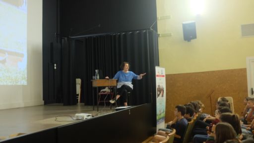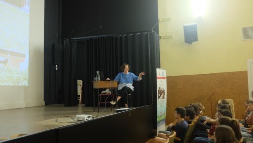 Hoy, nada más llegar, las alumnas y alumnos de 1º de ESO hemos empezado los trabajos de percusión en la clase de informática y un rato después ha empezado el taller de flora y fauna en el aula 009; al mismo tiempo se realizaba el taller de juegos africanos en el patio. Después del recreo ha venido Valle Iraburu a ofrecernos una charla en torno las 13:15h y le hemos hecho una pequeña entrevista.