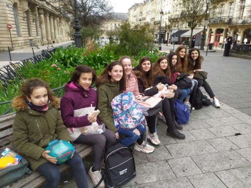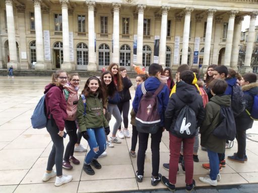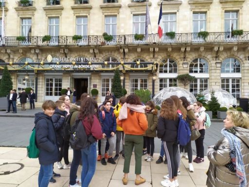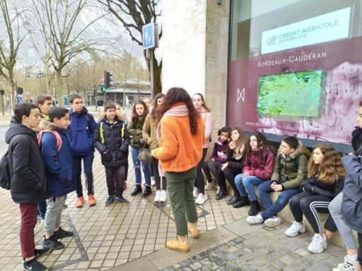 Con un poquito de sueño y emocionados de poder compartir un nuevo día, nos dirigimos a las 8h de la mañana al tranvía con todo el grupo español. Nos han acompañado dos guías por el centro de Bordeaux explicándonos y haciéndonos vivir el ambiente de la ciudad y su historia pasada, presente y de futuro.