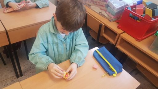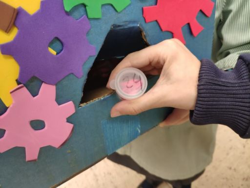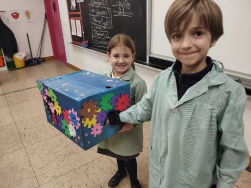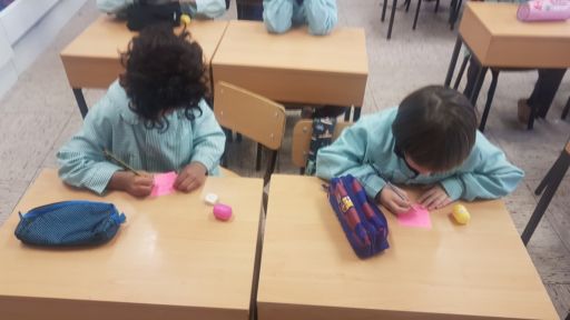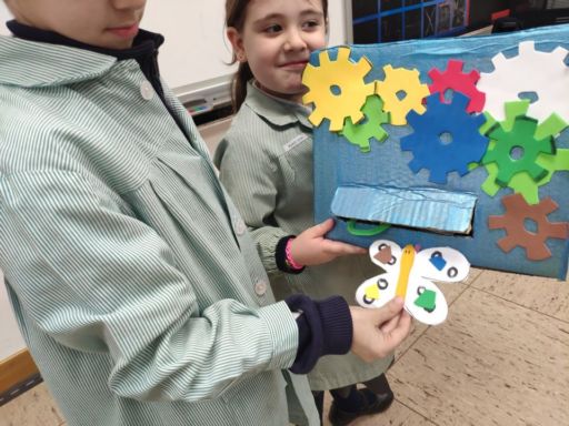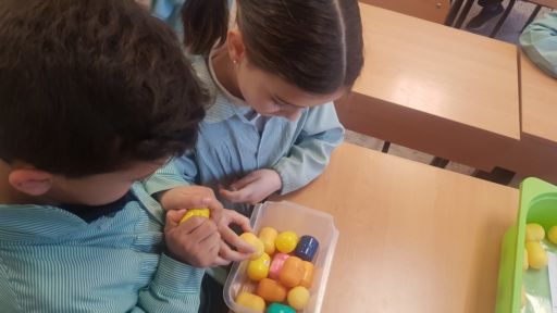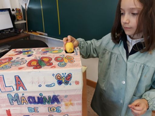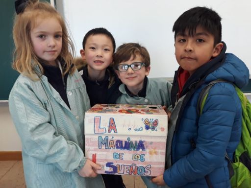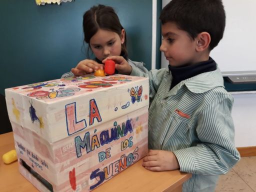 En 1º de primaria estamos trabajando el lema de este curso “Libres para amar y soñar” con la Máquina de los Sueños. En esta máquina, cada uno de nosotros hemos escrito un sueño que queremos que se cumpla para que el funcionamiento de la clase sea mejor. Estos mensajes los hemos metido en un huevito, y después, en la caja.