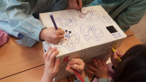 Cada semana sacamos un sueño de la caja, y durante toda la semana trabajamos para poder cumplirlo. Si se hace realidad, de ese sueño sale una bonita mariposa. El objetivo es llenar la clase de mariposas, lo que representa que hemos cumplido cada uno de nuestros sueños.