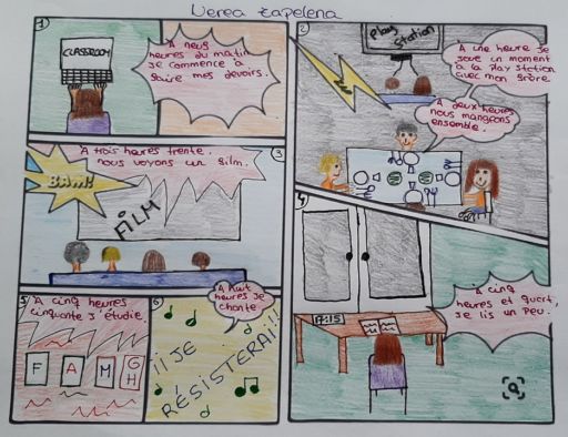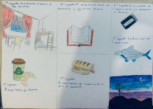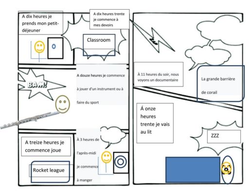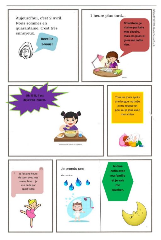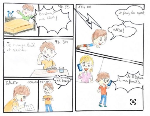Et nous revoilà pour la dernière ligne droite. Je vous invite à jeter un coup d’oeil au travail des élèves de cinquième. Par le biais d’une petite BD, ils racontent comment ils vivent le confinement. C’est touchant de voir que la routine s’est installée, encore plus intéressant de voir que certains élèves sont de vrais petits génies, que ce soit en français, en dessin, en informatique!!