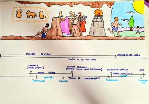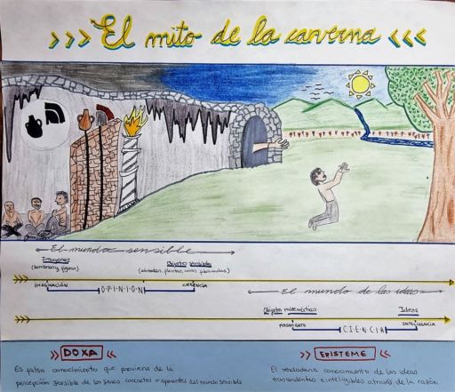 - Mediante esquemas visuales entendemos el significado del mito de la caverna platónica.