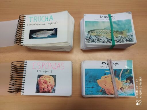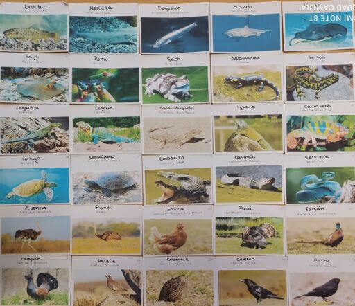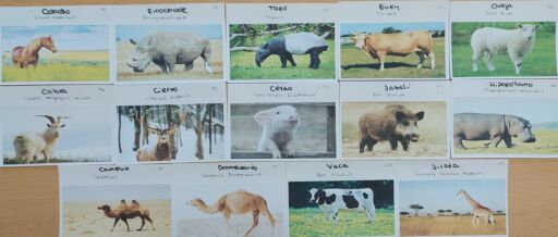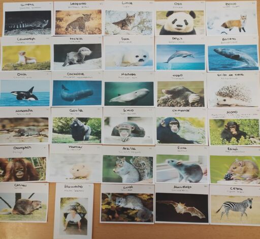 Lo estamos haciendo mediante tarjetas con dibujos o fotos de animales que nosotros/as mismos/as preparamos diariamente, y en las que (en la parte posterior) incluimos la taxonomía de cada ejemplar. De este modo, podemos preguntarnos entre nosotros/as, y comprobar si las respuestas son correctas, a modo de juego o concurso. También nos da la oportunidad de que nuestras familias puedan preguntarnos también en casa. ¡Una forma lúdica y dicertida de aprender muchísima información!