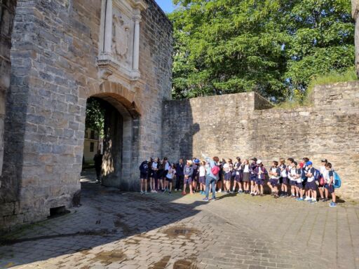 El pasado viernes, 13 de mayo, el alumnado de 5º de Primaria revivió la historia de nuestra ciudad visitando los tres Burgos del Casco Antiguo, reencontrándose con los personajes y lugares que la conformaron, la Navarrería, San Cernin y San Nicolás. Pasamos por lugares tan emblemáticos como la Plaza del Castillo, el Baluarte del Redín, la Catedral, el Portal de Francia, el Ayuntamiento, el Archivo y tantos otros… Fue una mañana de luz, sol y alegría. Disfrutamos un montón.