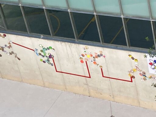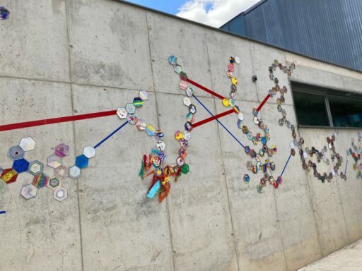 Como en todo acto comunicativo, lo más importante es escuchar aquello que está entre líneas y aquí podéis observar como cada una y uno ha hecho su parte de trabajo para conseguir un proyecto que hace más bonito el colegio integrando a cada persona en un enjambre de amistad y de relación tan fuerte como la cinta que los une.