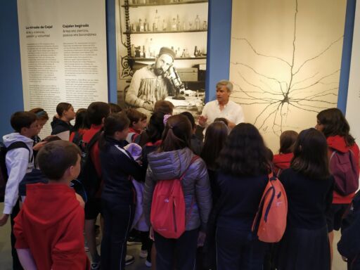 Hoy lunes, los alumnos y alumnas de 6º de Primaria hemos acudido al planetario de Pamplona para ver una exposición sobre la mirada de Cajal, nuestro Premio Nobel de medicina. Dentro de un ambiente magnífico hemos aprendido la diferencia entre retícula y conexión neuronal. Agradecemos la atención prestada por el planetario, y en especial por Juanjo Rubio, hermano de nuestra compañera Ana.