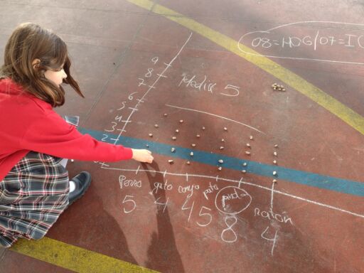 Lacasitos, piedras, tizas, hojas de cálculo, patios,.. una combinación de recursos para acercarnos a la estadística en Matemáticas de 5º de Primaria. Hemos aprendido a interpretar y crear gráficas, hallar conceptos como la media y la moda, reflexionar sobre los datos en la sociedad, y muchas otras actividades divertidas dentro de esta área.