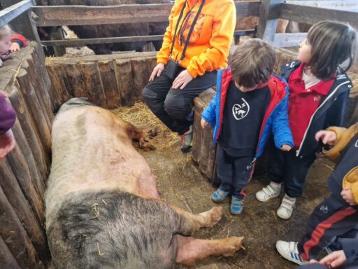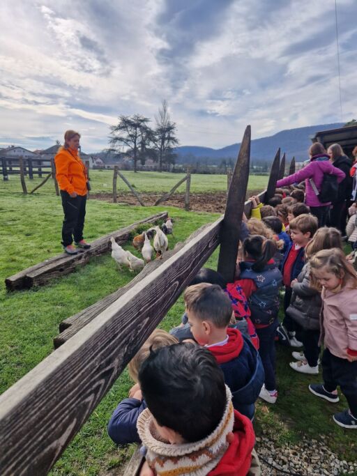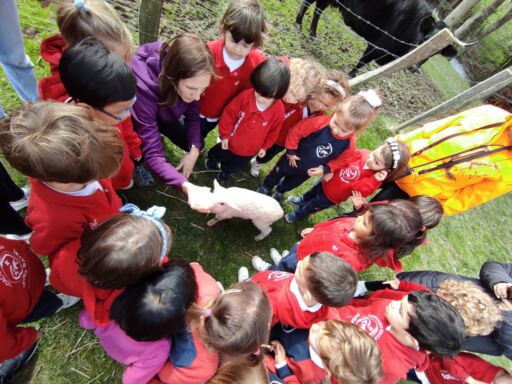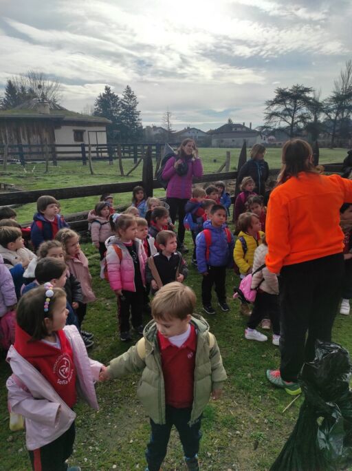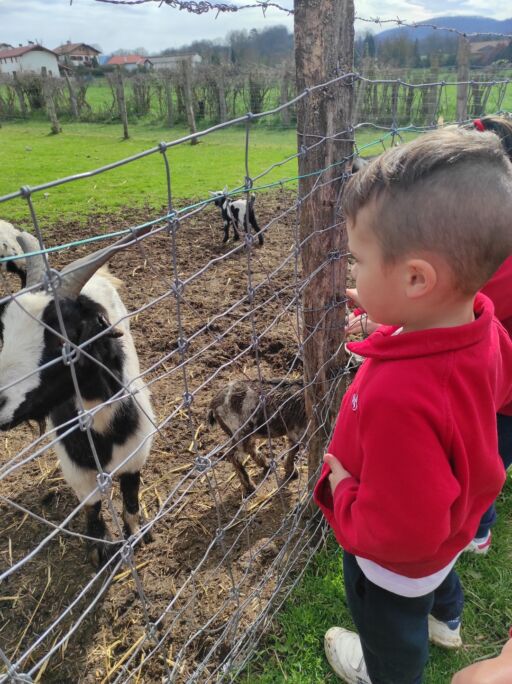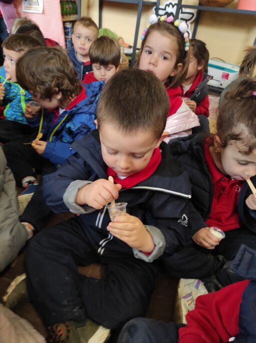 El pasado viernes los niños y niñas de 1º de Infantil visitamos la Granja Ultzama. Queríamos ver de verdad todo lo que estábamos aprendiendo en el aula: vacas, cerdos, caballos, conejos, burros, ovejas, gallinas… ¡¡Había de todo!! También aprendimos a hacer cuajada y a echar un ingrediente sorpresa… ¡chocolate! ¡Qué rica estaba!