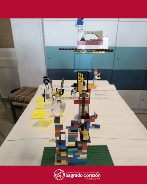 El alumnado de 1º de Bachillerato ha reflexionado sobre los nueve proyectos de aprendizaje-servicio sobre los que están trabajando este curso. Con la ayuda de Alberto Mas y aplicando la metodología de Lego Serious Play han evaluado cada proyecto para ver en qué punto se encuentran: qué han conseguido hasta este momento, qué ha aportado cada miembro del grupo, qué retos tienen por delante y qué tienen que hacer para conseguirlos. Mediante la construcción de modelos con piezas de Lego han podido llegar a conclusiones muy interesantes que les ayudará en sus proyectos AySS en los que atienden a personas mayores, promueven el comercio justo, acompañan en sus tareas escolares a niños y niñas con dificultades o a personas hospitalizadas.