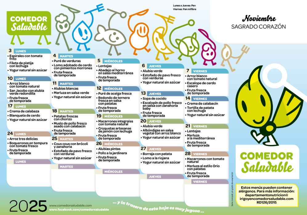 Menú del comedor para el mes de NOVIEMBRE de 2025: