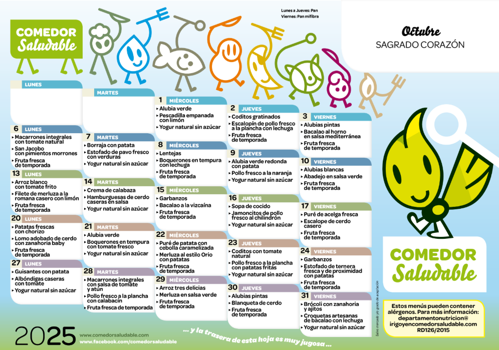 Menú del comedor para el mes de OCTUBRE de 2025: