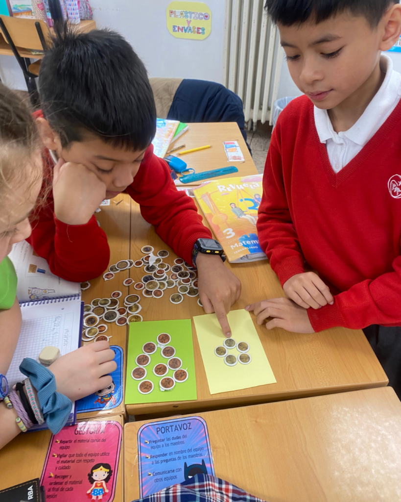 Nuestro alumnado está aprendiendo a contar céntimos y euros, y también a comprar, vender y devolver el cambio exacto utilizando monedas y billetes 💶.